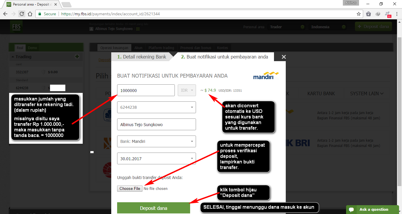 Trader Pemula Cara Deposit di FBS Catatan Trader Forex