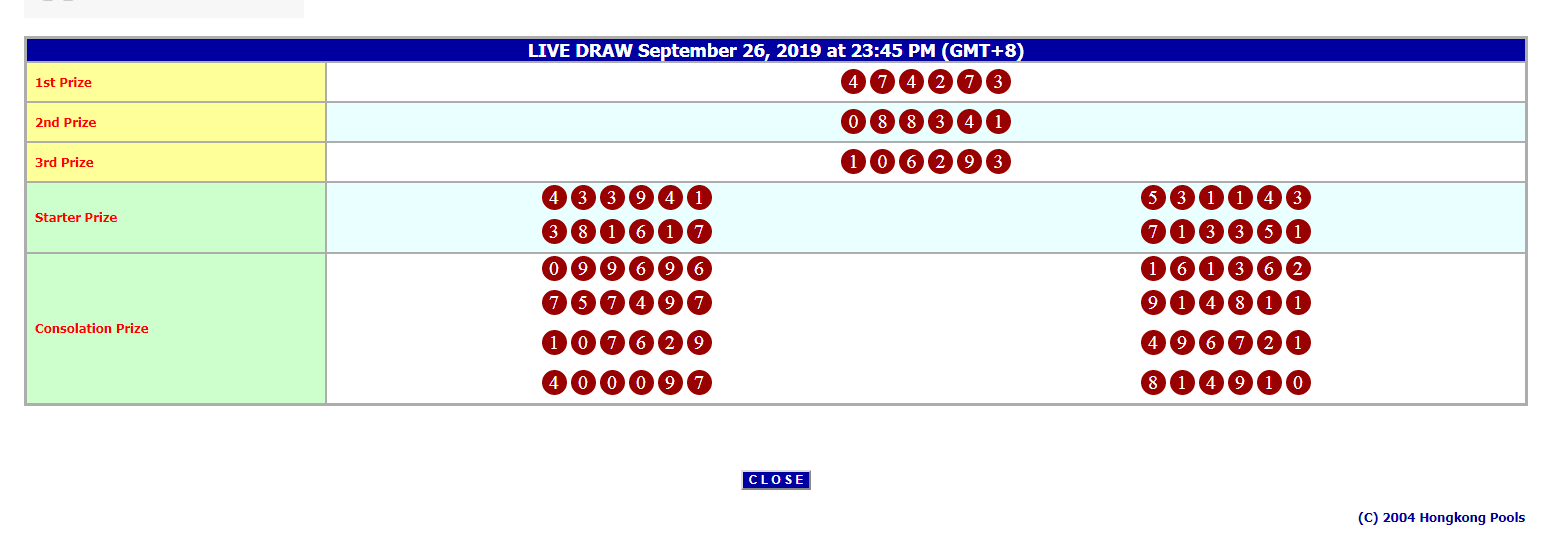 Mark Six Results Details Friday 27th May 2022. Numbers, winners, prize per winner, paid out, total winners. Choose your country. LotteryExtreme.com; Hongkong Mark Six; Prizes 2022-05-27; Hongkong Lottery: Mark Six Results: Home Page: Data HK adalah situs update keluaran HK terupdate tahun 2020 dan 2023. Rekapan hasil pengeluaran hk tercepat dan terbaru.